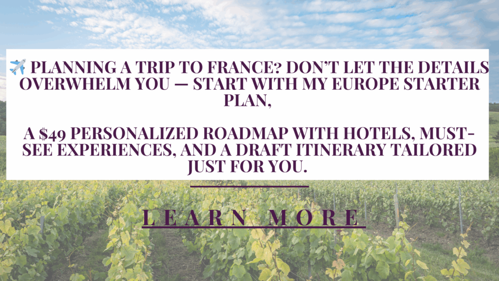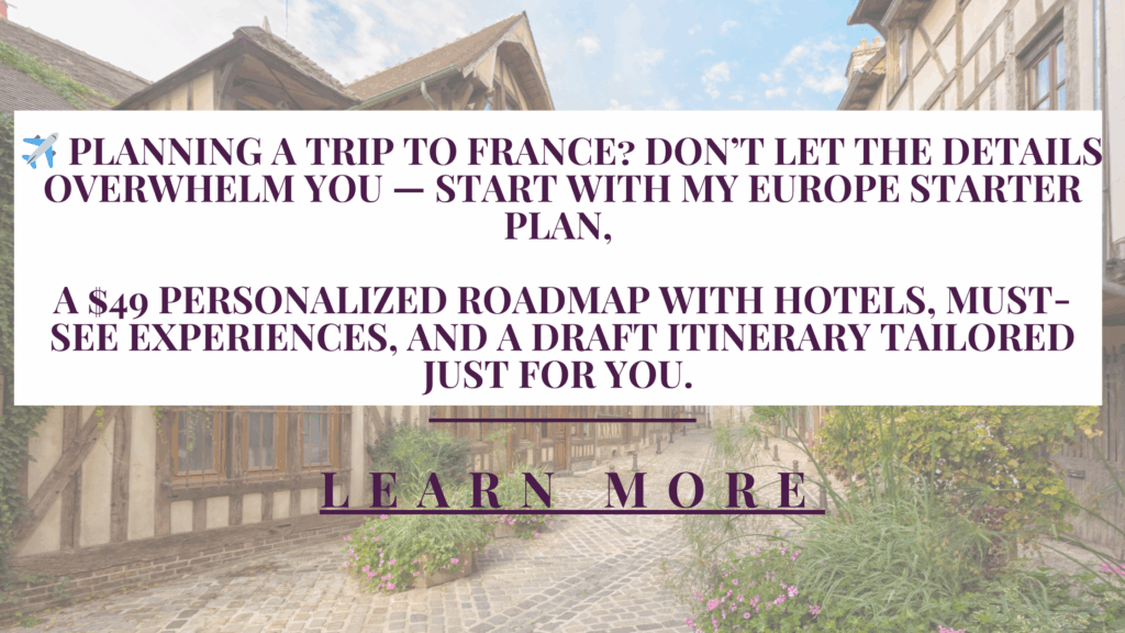 Let’s make it happen! I can help you organize the perfect trip to France. Please see my Book with Me Page for more information. Or head to my European Itinerary Starter Plan to get started planning right away!
