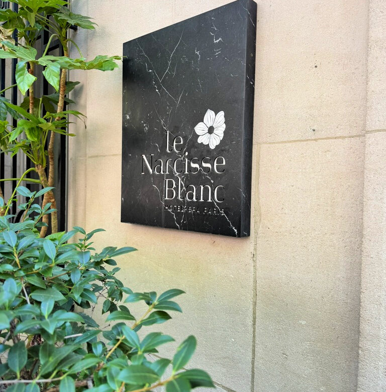 Le Narcisse Blanc Hotel & Spa is one of those rare Parisian hotels that manages to feel both indulgently luxurious and quietly intimate at the same time. Tucked into the elegant 7th arrondissement — steps from the Seine and a short stroll to the Eiffel Tower—it immediately won me over with its calm, romantic atmosphere. From the moment we walked in, the lobby’s soft golden glow and timeless Parisian design set the tone for our stay: serene, chic, and deeply Parisian.